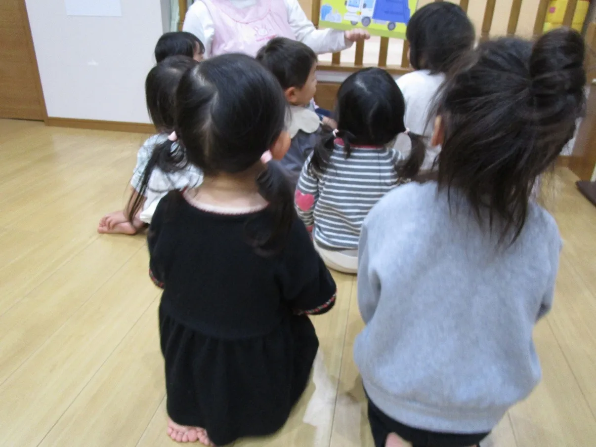 朝はみんなで集まって絵本を見たり歌をうたったり朝の会をしています。