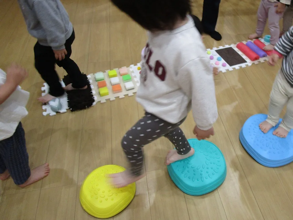 朝の会が終わると散歩にでかけたり室内で遊んだりしています。