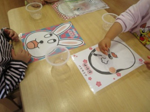 め、はな、くちと順番に置いて…「できた!」