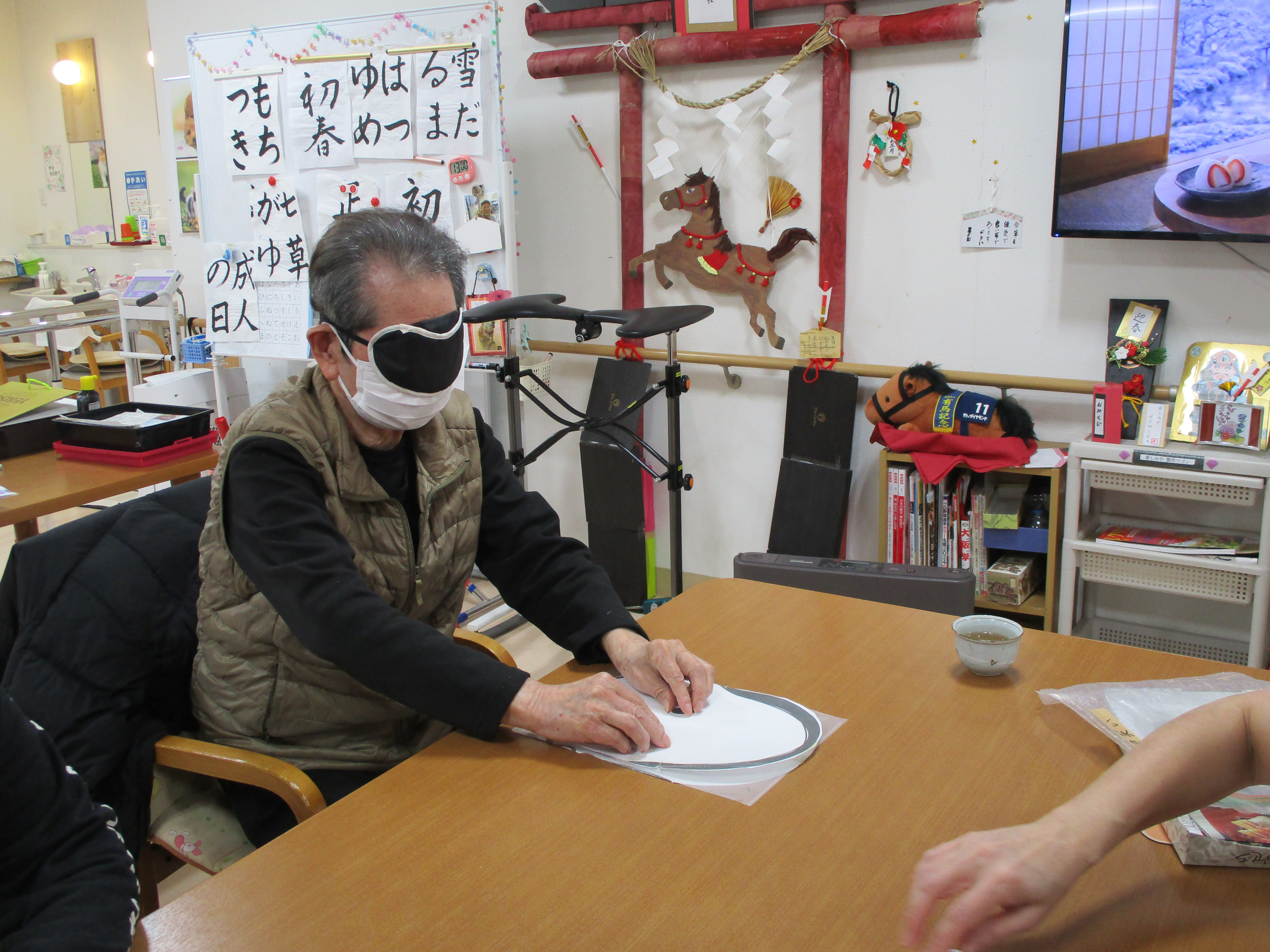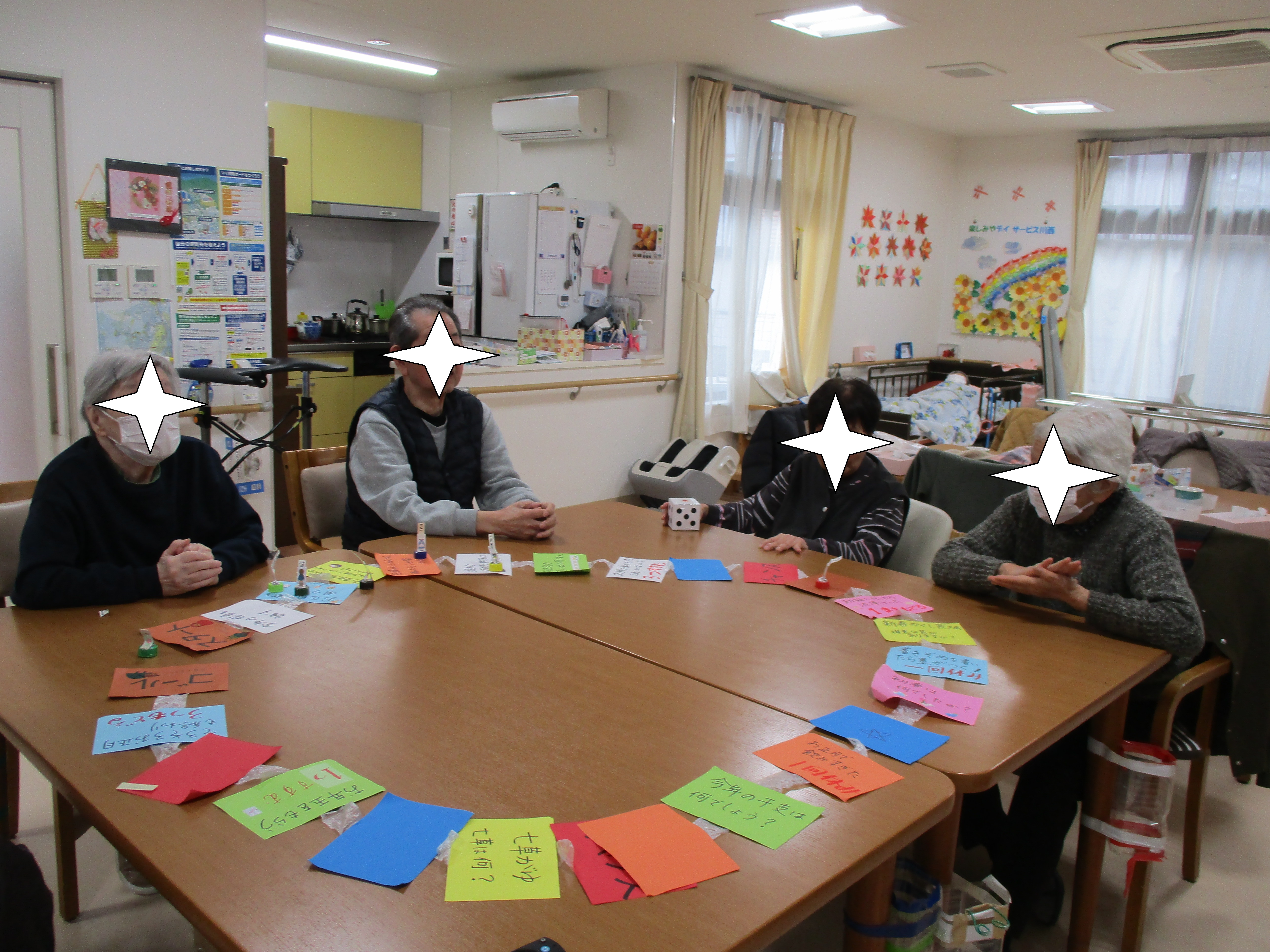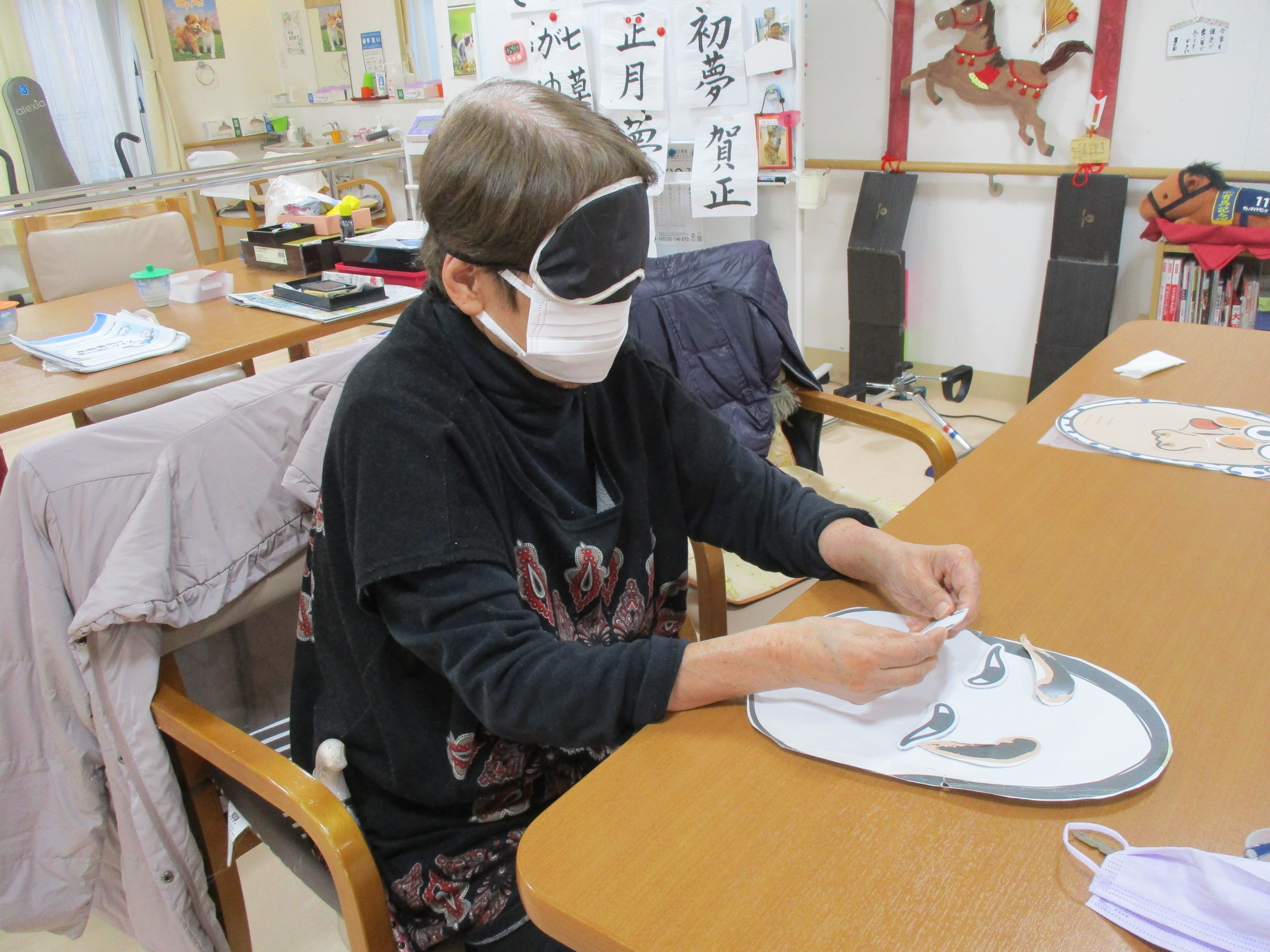 レクリエーションは福笑いとすごろくゲームです